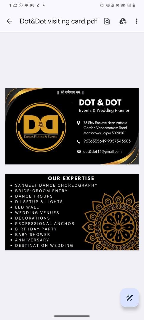 Dot&Dot Events is your dedicated wedding planner in Jaipur, committed to crafting unforgettable celebrations. Located at 87 A hanuman vihar iskon road Vijay path mansarovar, we bring expertise and passion to every detail of your special day. From initial concept to flawless execution, we handle all aspects of wedding planning, ensuring a stress-free and joyous experience. We understand that every couple is unique, and we tailor our services to reflect your individual style and preferences. Trust Dot&Dot Events to transform your wedding dreams into a beautiful reality. Contact us to begin planning your perfect day. best wedding planner best wedding planner jaipur